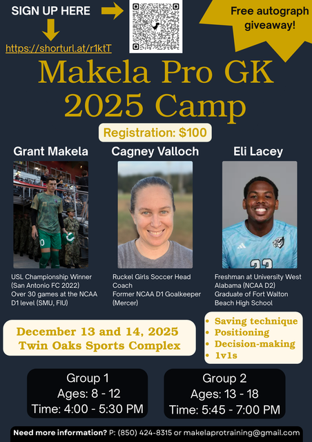 Emerald Coast Rush will be hosting the Makela Pro GK Camp 2025.