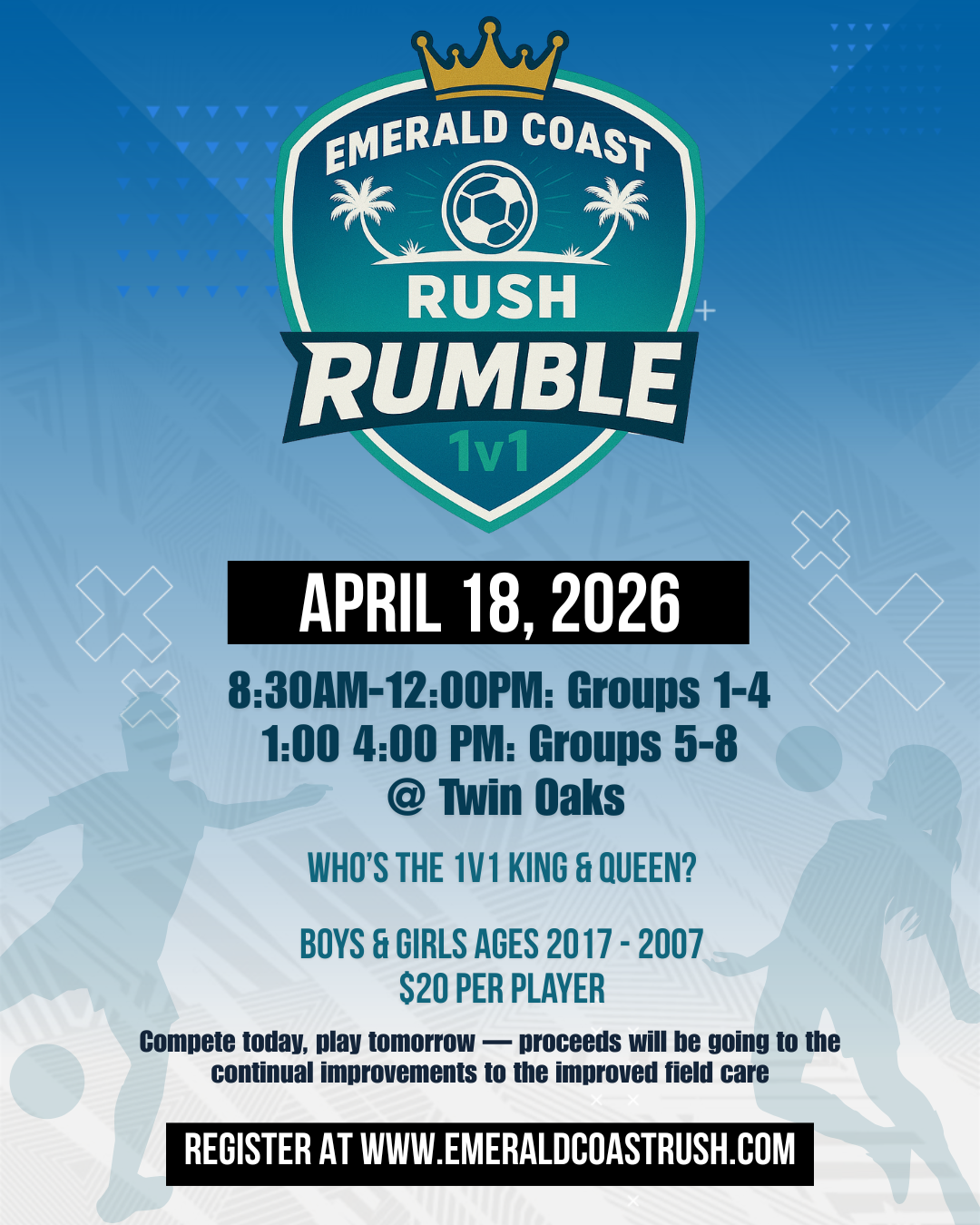 Get ready for the Rush Rumble, an electrifying 1v1 tournament inspired by Top Baller and Panna! This event is designed to test your skills while raising crucial funds for the construction of a new outdoor turf field.